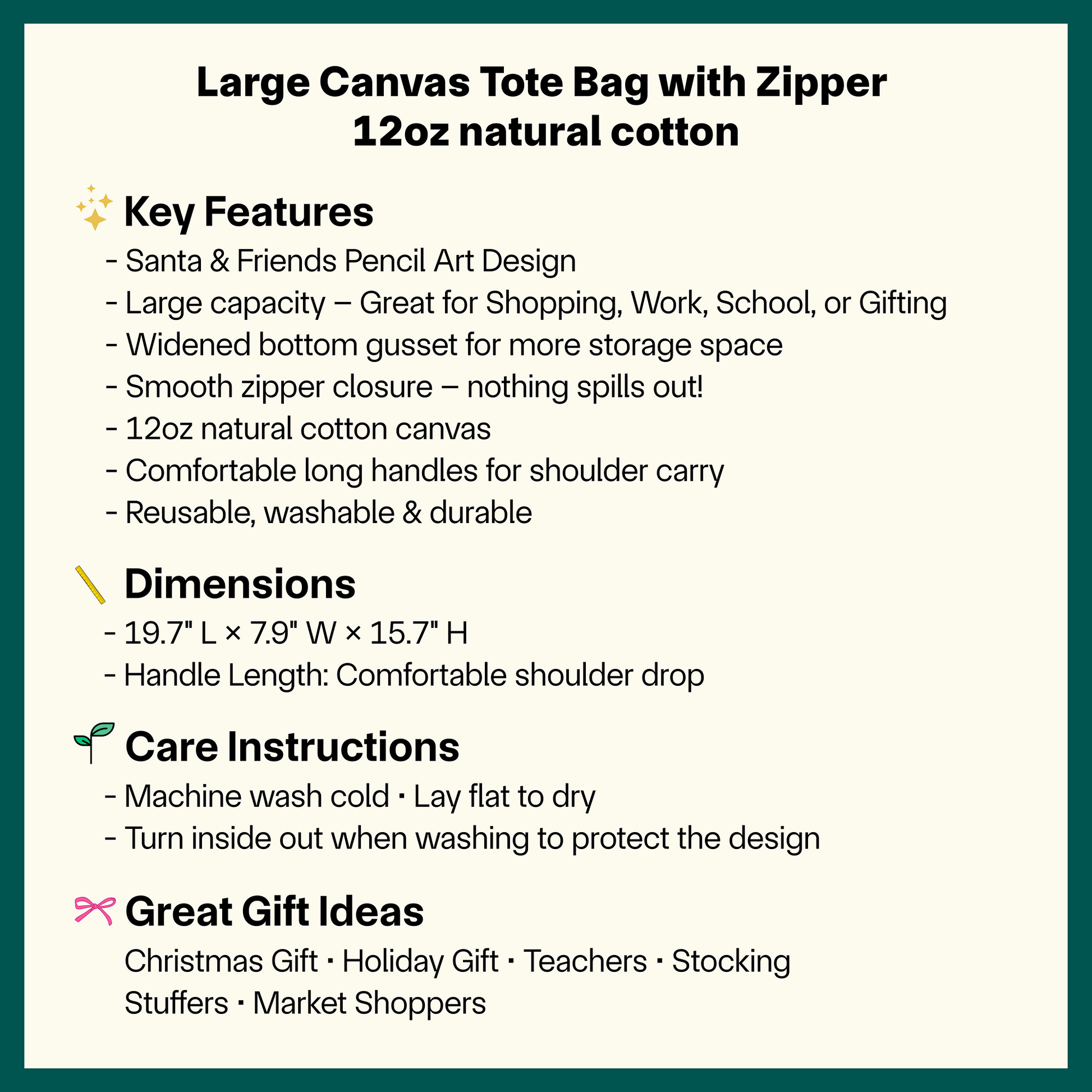 ππ Santa & Friends Pencil Art Tote β Adorable Christmas Characters on Canvas
