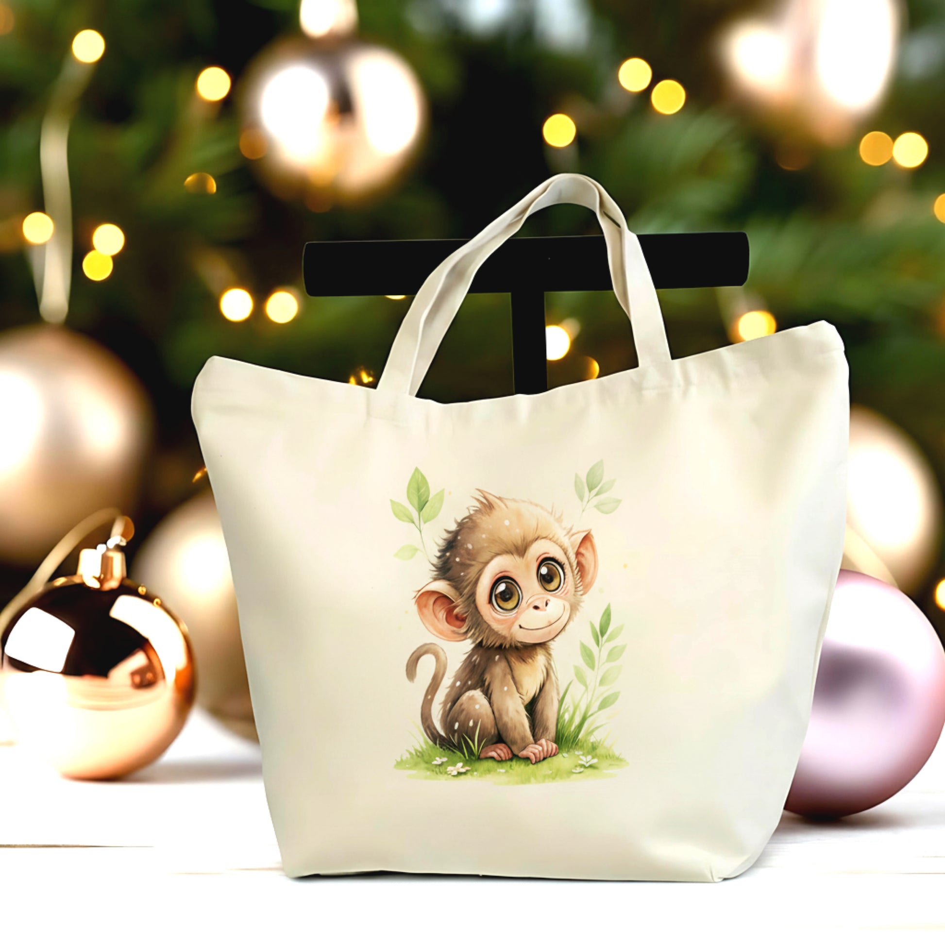Carry a little joy wherever you go with this adorable baby monkey tote bag ๐Ÿ’