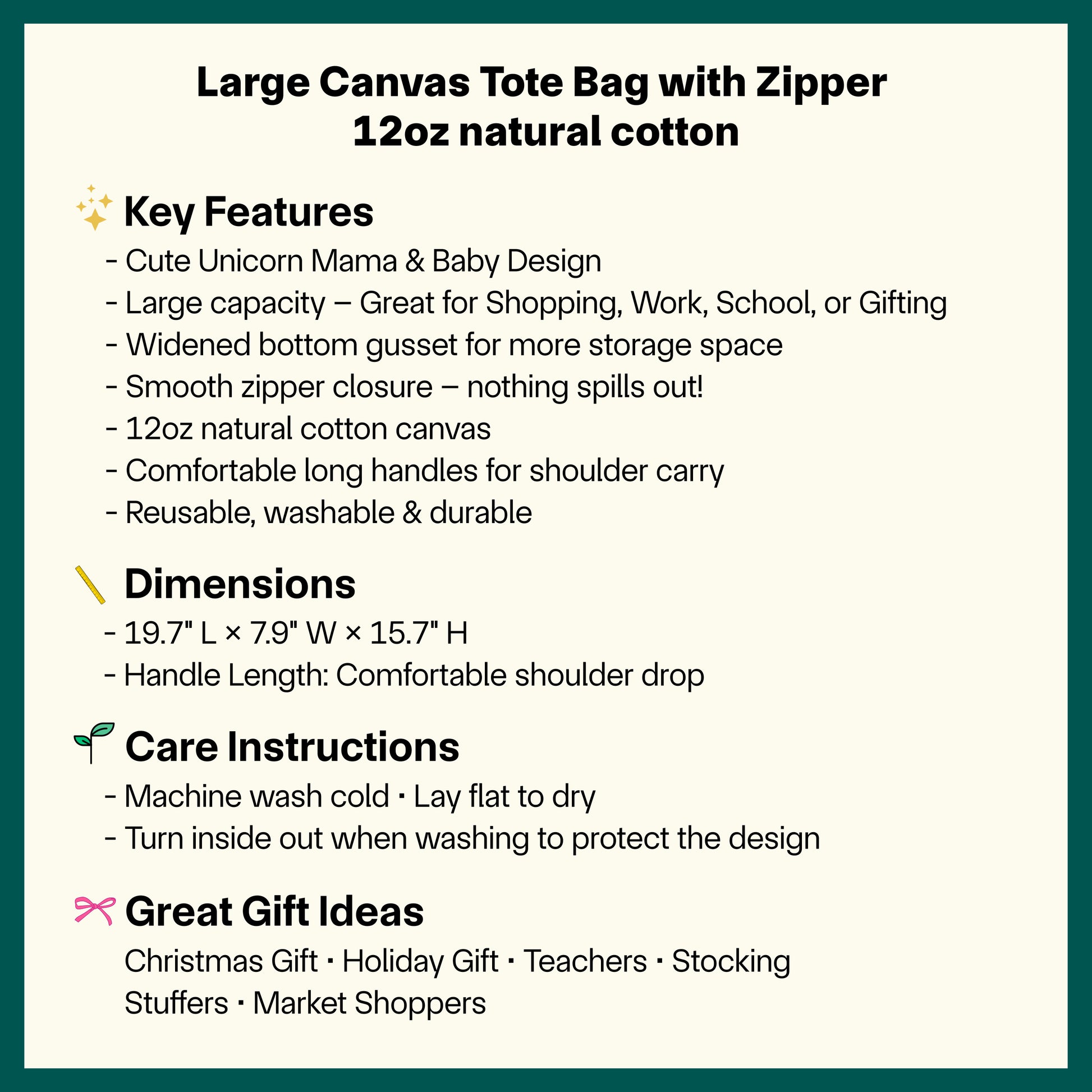 Crafted from 12oz thick cotton canvas, this reusable bag is perfect for holiday shopping, gift wrapping, or carrying festive goodies. Durable, washable, and charming — A perfect addition to your daily essentials!